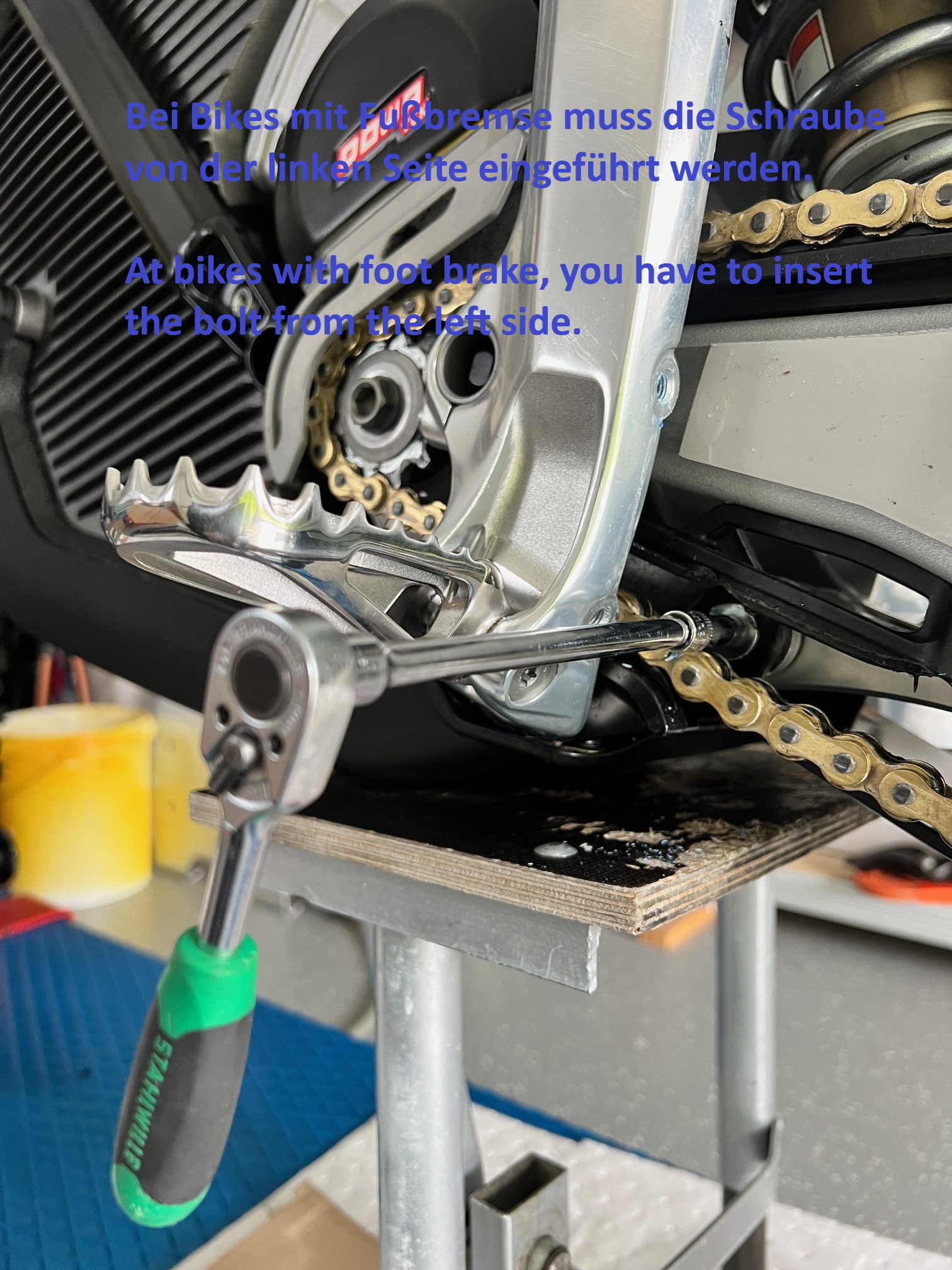 Attention! With the foot brake, the screw must be inserted possibly from the left, and the side stand must be removed for this purpose!